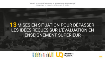 Communauté d’apprentissage et de pratique en évaluation de l’Université du Québec. (2026) 13 mises en situation pour dépasser les idées reçues sur l’évaluation en enseignement supérieur. Université du Québec.